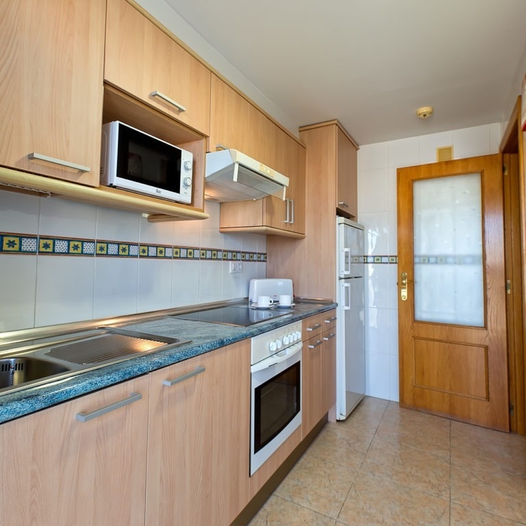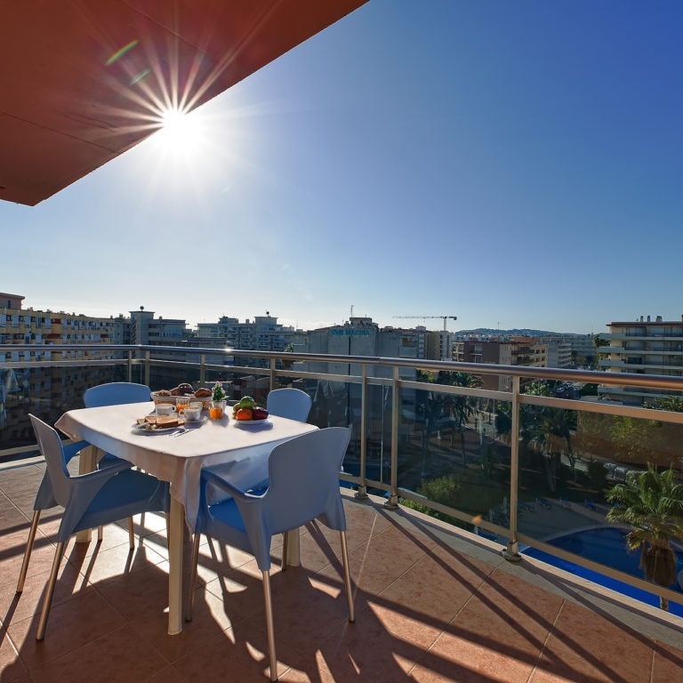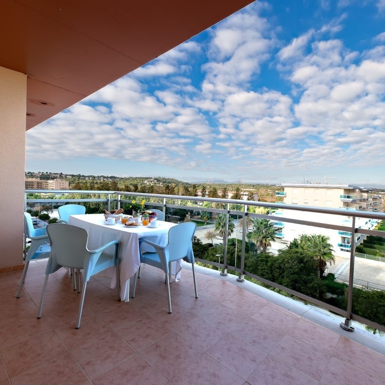 Apartamentos Pineda Park is a building with 62 tourist apartments (NIRC: ATT-000008) of various capacities on 5 floors. The building is distributed in apartments with 2 bedrooms with 2 bathrooms, 3 bedrooms with 2 bathrooms, and duplex with bathroom and toilet. They all have ducted air conditioning (very quiet), flat screen TV, sheets and towels. They also have a dining room and a separate kitchen equipped with a ceramic hob, fridge, oven, microwave, coffee maker, kettle, kitchen utensils and cutlery.